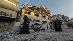 I palestinesi ispezionano la casa danneggiata del leader della Jihad islamica Bahaa Abu al-Atta dopo un raid aereo israeliano a Gaza City_Mohammed Sabre_ EPA Mi piace Caricamento...